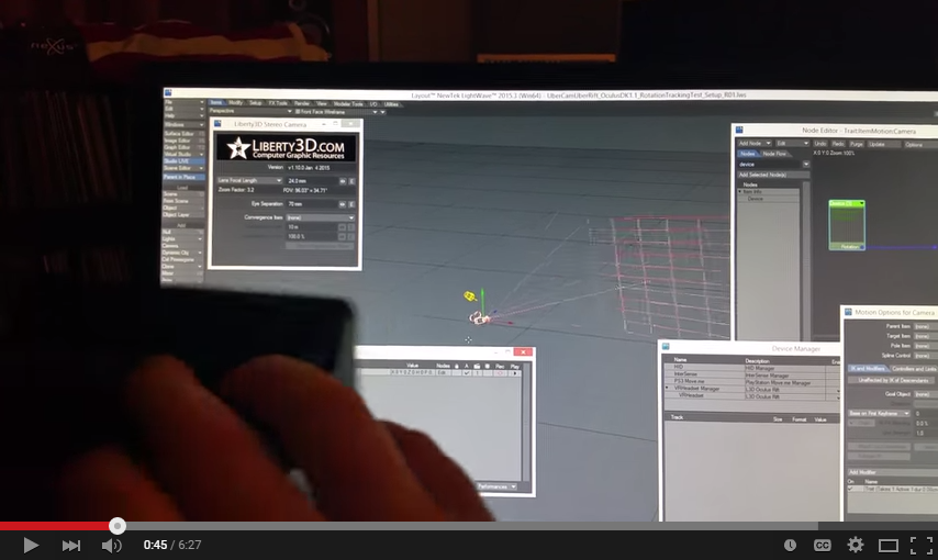 Here is a video by Kat showing you just how easy it is to set up the Oculus Rift (DK 1.1 version) inside Virtual Studio Tools. This gives you real-time rotational head tracking from the Oculus Rift. Put on your Rift and look around your LightWave3D scenes in Virtual Reality!Here is another video by Chilton Webb showing our new Immersive Camera in UberCam 2.0.2. This is now known as our VR Camera. You want to pay attention to this one because you can now make cool videos on youtube that are in 360degree spherical format! This format is going to explode (actually it already is) as it works on everyday smartphones, Google CardBoard and youtube and lets you pan around.
